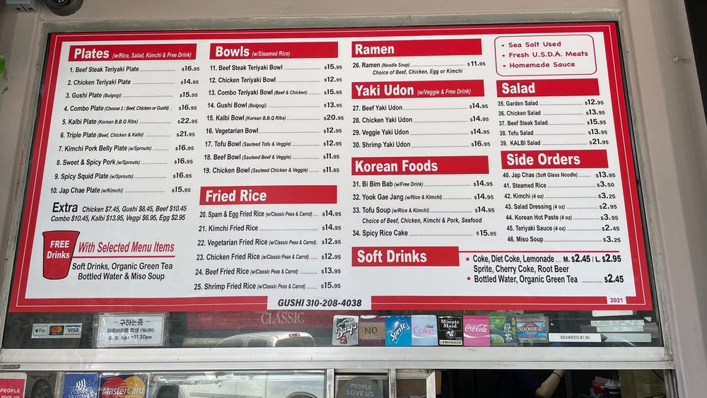 Gushi, a Korean restaurant located in Los Angeles, offers a variety of flavorful dishes with options for both meat lovers and vegetarians alike. The menu includes mouth-watering options such as Beef Steak Teriyaki Bowl, Chicken Teriyaki Bowl, Gushi Bowl, Kalbi Bowl, Vegetarian Bowl, and more. Customers rave about the quality and taste of the food, with one reviewer describing it as the best quick Korean food they've had. The cozy outdoor seating area adds to the dining experience, making it a great spot for a casual lunch or dinner. The friendly staff and prompt service enhance the overall dining experience. Gushi is a hidden gem for those craving authentic Korean cuisine in a relaxed setting.
